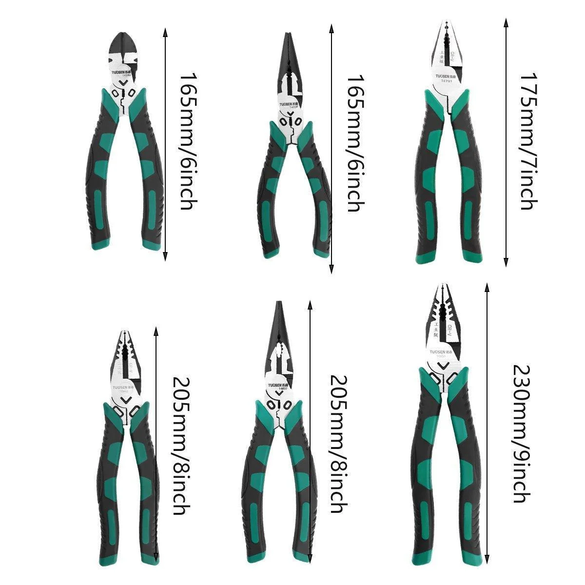 Multi-functional Design: Includes flat, needle-nose, and diagonal wire pliers, catering to various cutting and gripping needs.