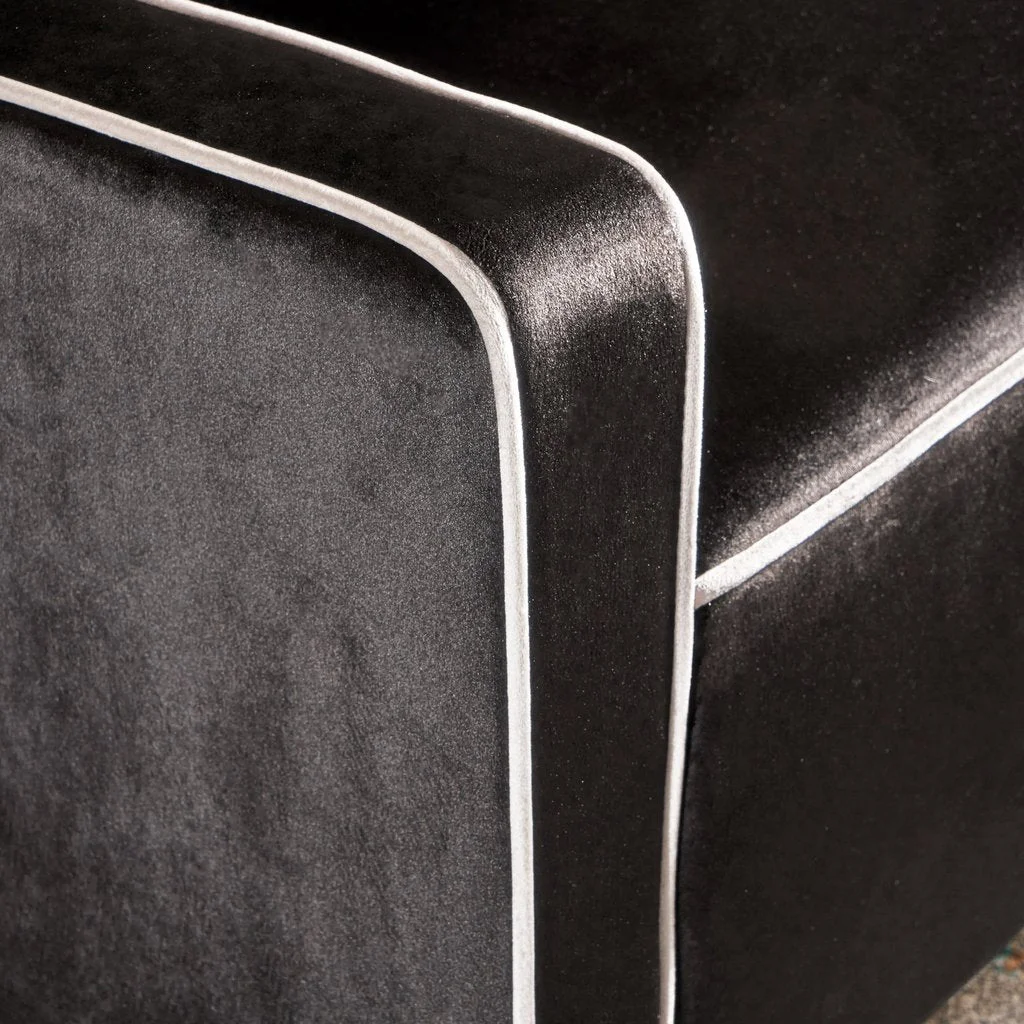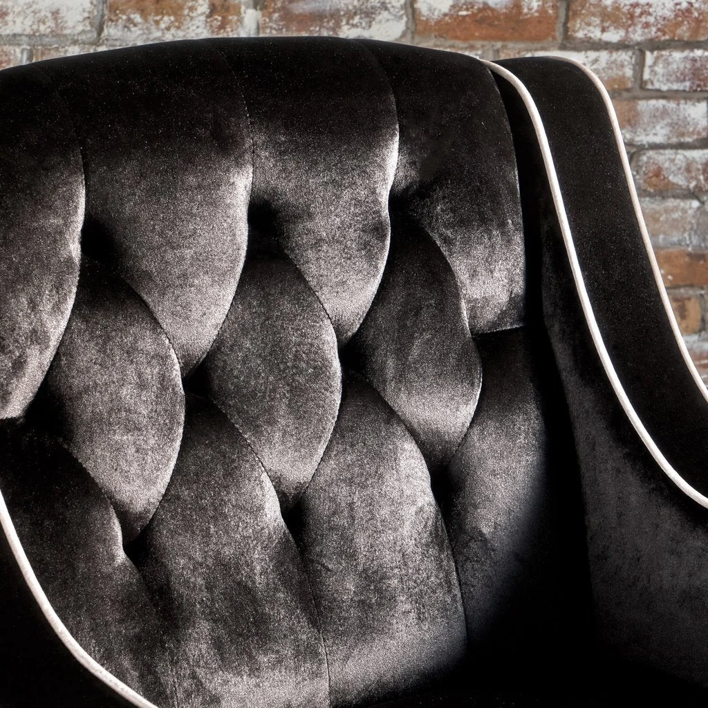 This two-tonedBlack velvet armchair offers a new take on a traditional look, providing both style and comfort. Featuring outlined edges and a tufted back, this is sure to receive compliments from visitors to your home. Made from the highest quality materials, it will last for many years to come.