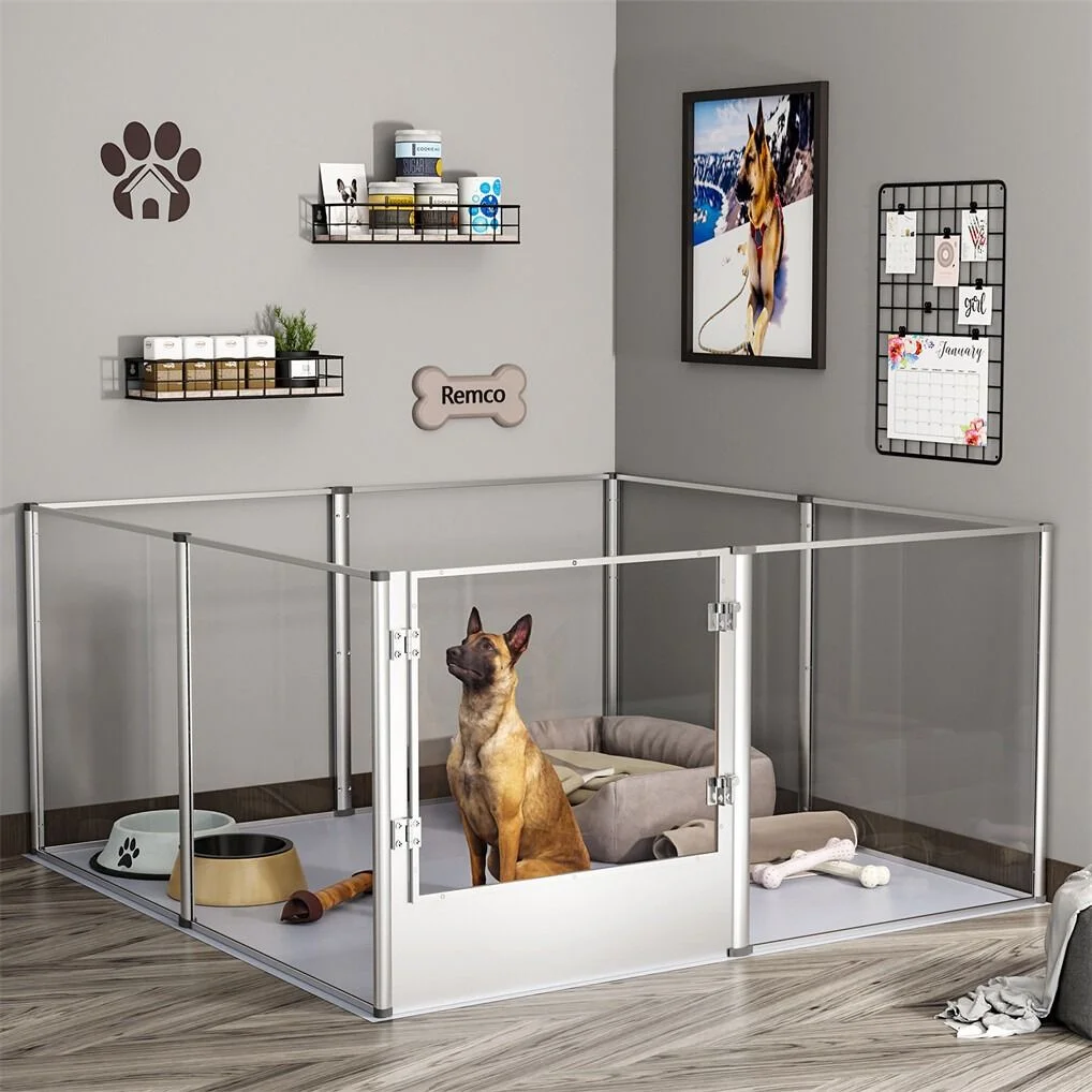 Large Acrylic Dog Playpen 132x132x80.5cm, 8 Panels Cage