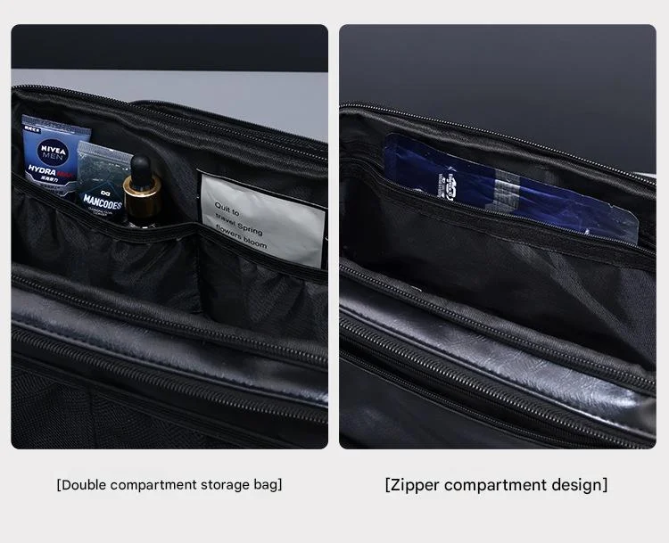 Travel in style and stay organized with this multi-functional, large-capacity toiletry bag. Made from high-quality, water-resistant PU leather with a subtle texture, this dopp kit is designed for both men and women. It features a unique three-compartment design that opens up 180 degrees for easy, flat-lay access to all your essentials. The spacious main compartment can hold large items like 400ml bottles, and includes dual internal slip pockets and a side zipper pocket. The two side wing compartments are equipped with elastic loops, mesh pockets, and a zippered section to neatly organize smaller items like toothbrushes, razors, makeup brushes, and travel-sized samples. Its big opening, dual zippers, and comfortable side handle make it the perfect travel companion for business trips or vacations.
