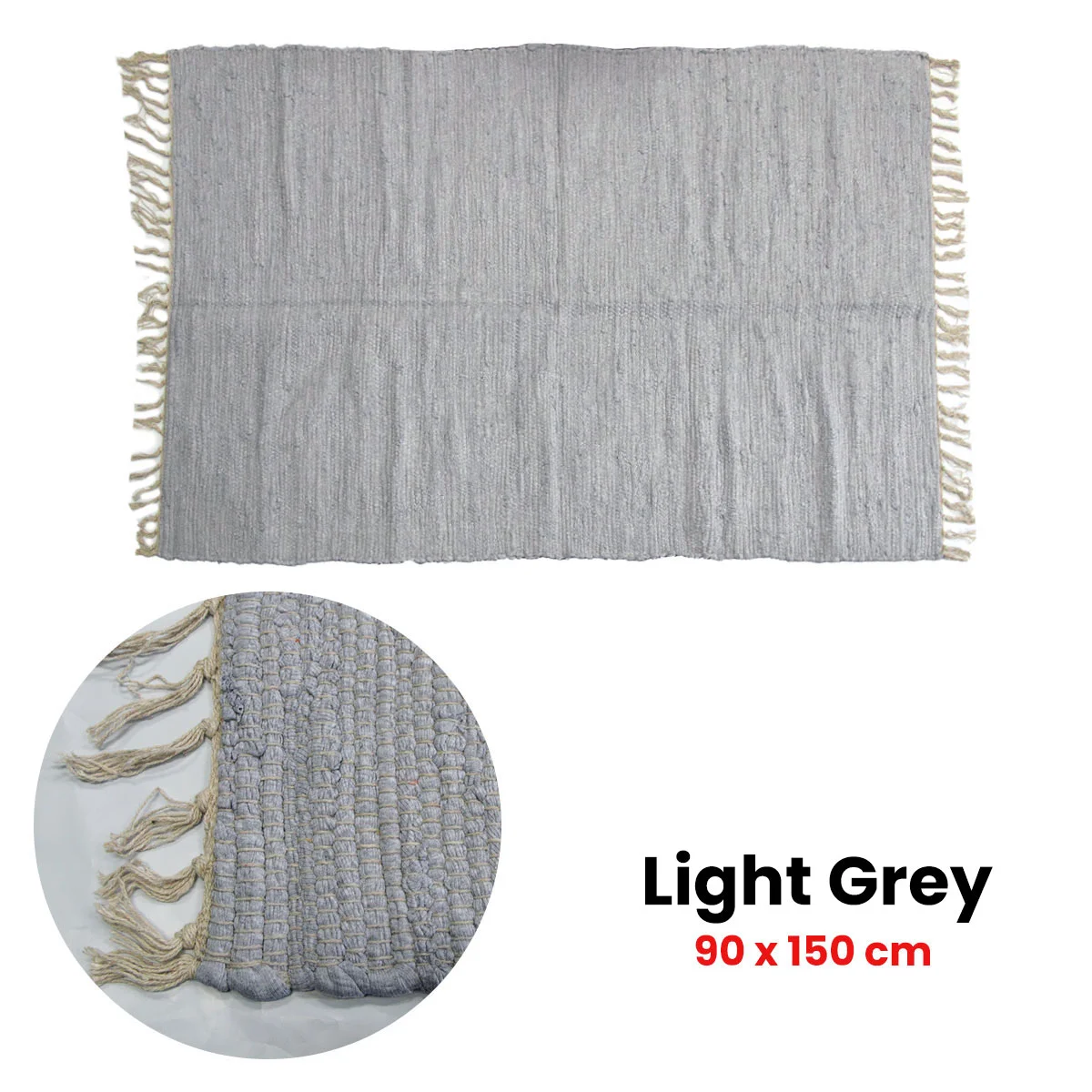 Are you looking for a unique and stylish way to add a touch of texture and warmth to your home? Check out our Large Chindi Cotton Handmade Floor Mat with Tassels 90 x 150 cm! This floor mat is perfect for adding a splash of colour and comfort to any room. It features woven design with a playful tassels on each end that add a bit of fun and flair to the design. Tassels are uneven length. Made from 100% cotton, each mat is carefully handmade, giving it a unique and authentic feel.