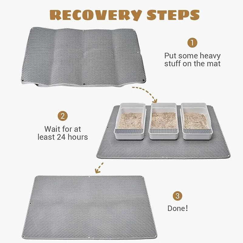 Keep your home clean and litter-free with this innovative double-layer cat litter mat. Designed to efficiently trap litter from your cat’s paws and prevent it from spreading, this mat makes cleaning easier and more convenient. The top honeycomb layer allows litter to fall through, while the waterproof bottom layer collects it for easy disposal. Made from soft yet durable EVA material, this mat is gentle on your cat’s paws and resistant to wear. The foldable design makes it easy to store, clean, and handle, providing a hassle-free solution for pet owners.