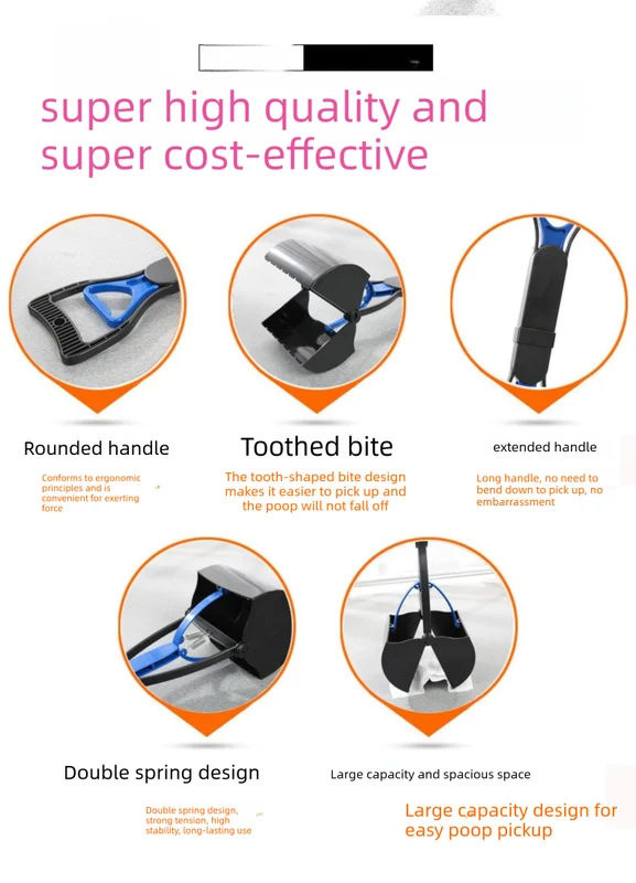 Maintain a clean backyard and enjoy hygienic walks with this heavy-duty pooper scooper. Constructed from durable ABS and PP materials, it feels solid in the hand (approx. 420g) and is built to last. The ergonomic handle design ensures comfortable one-handed operation—simply pull the lever to open the jaws and release to scoop.