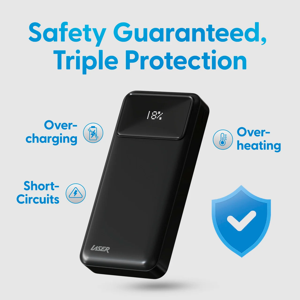 Meet the Laser 20000mAh Powerbank, your must-have backup for life on the move.