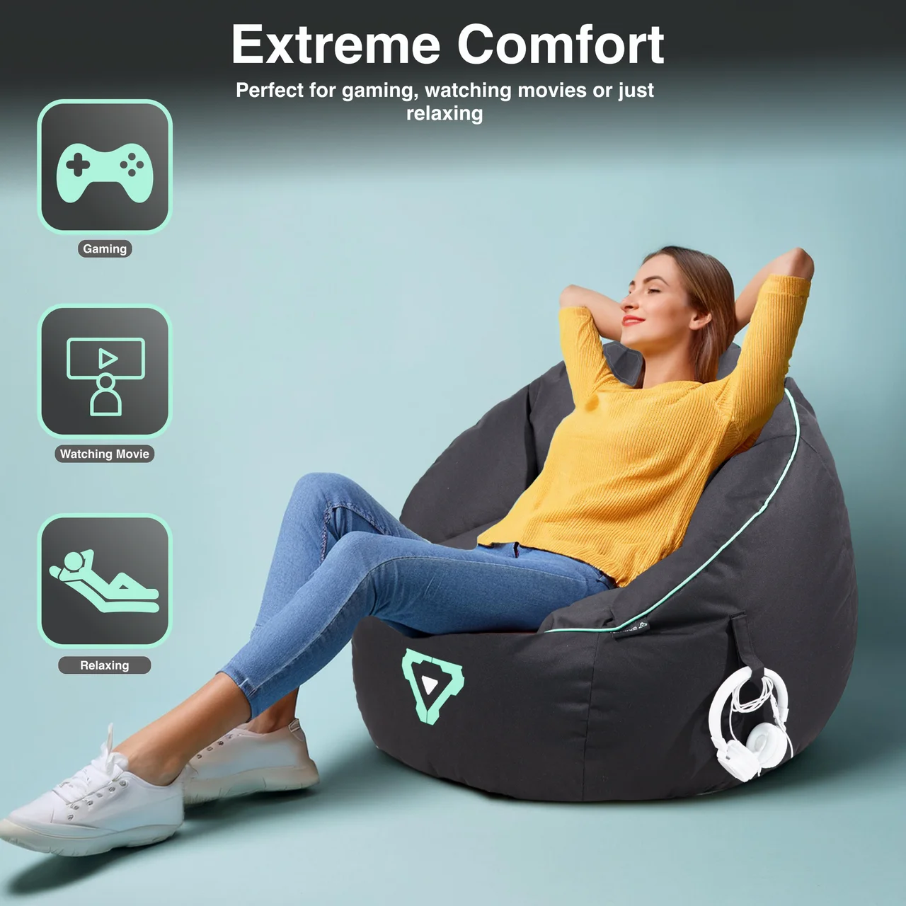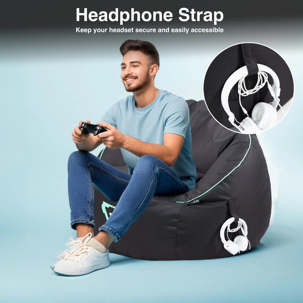 Laser Gaming Bean Bag with Headphone Strap Side Pocket