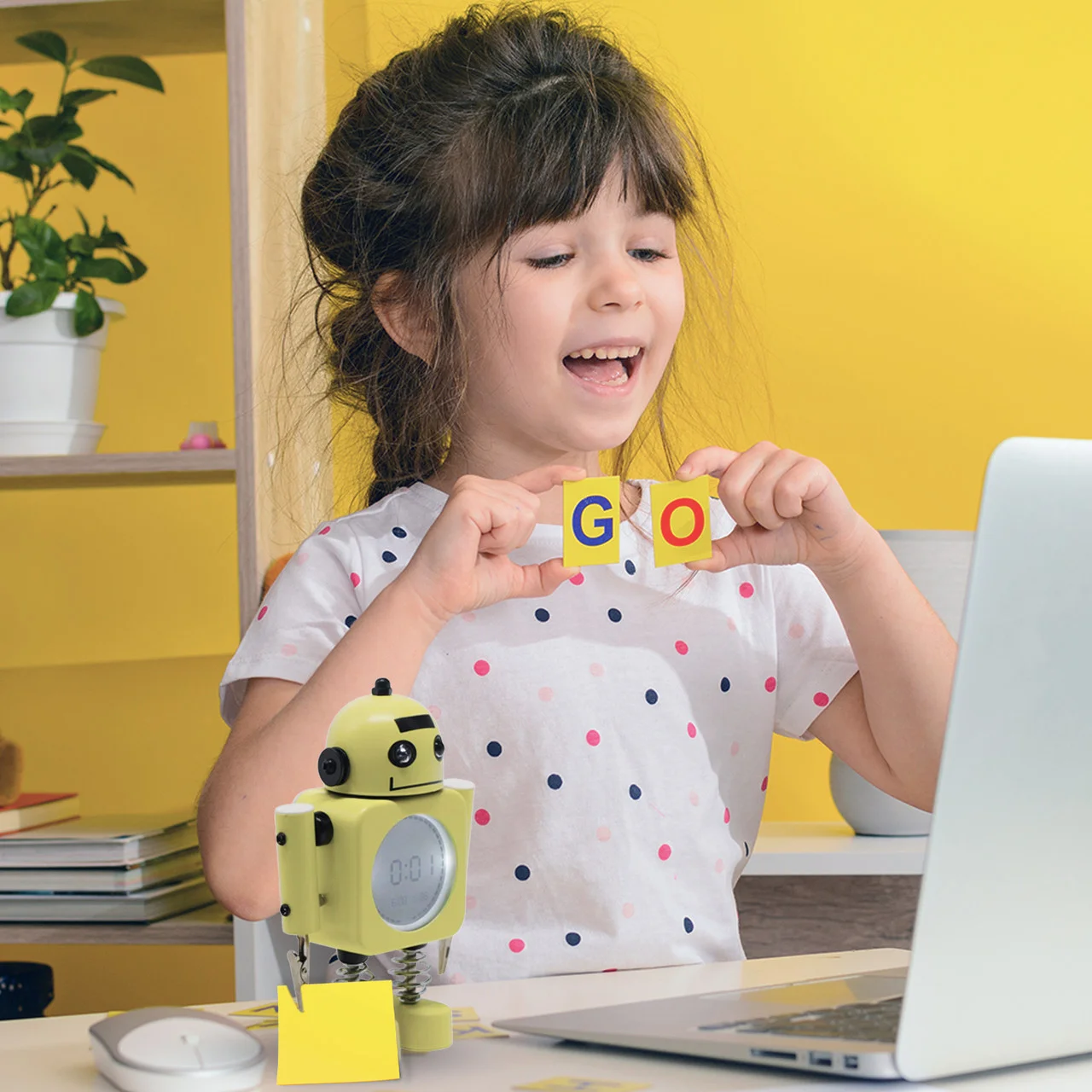 Brighten your childs mornings with the Laser Kids Robot Alarm Clock in vibrant yellow! This fun and interactive clock is perfect for kids bedrooms, combining functionality with an adorable robot design. The large display shows time, date, and temperature, complete with a heartbeat graphic to make waking up enjoyable.