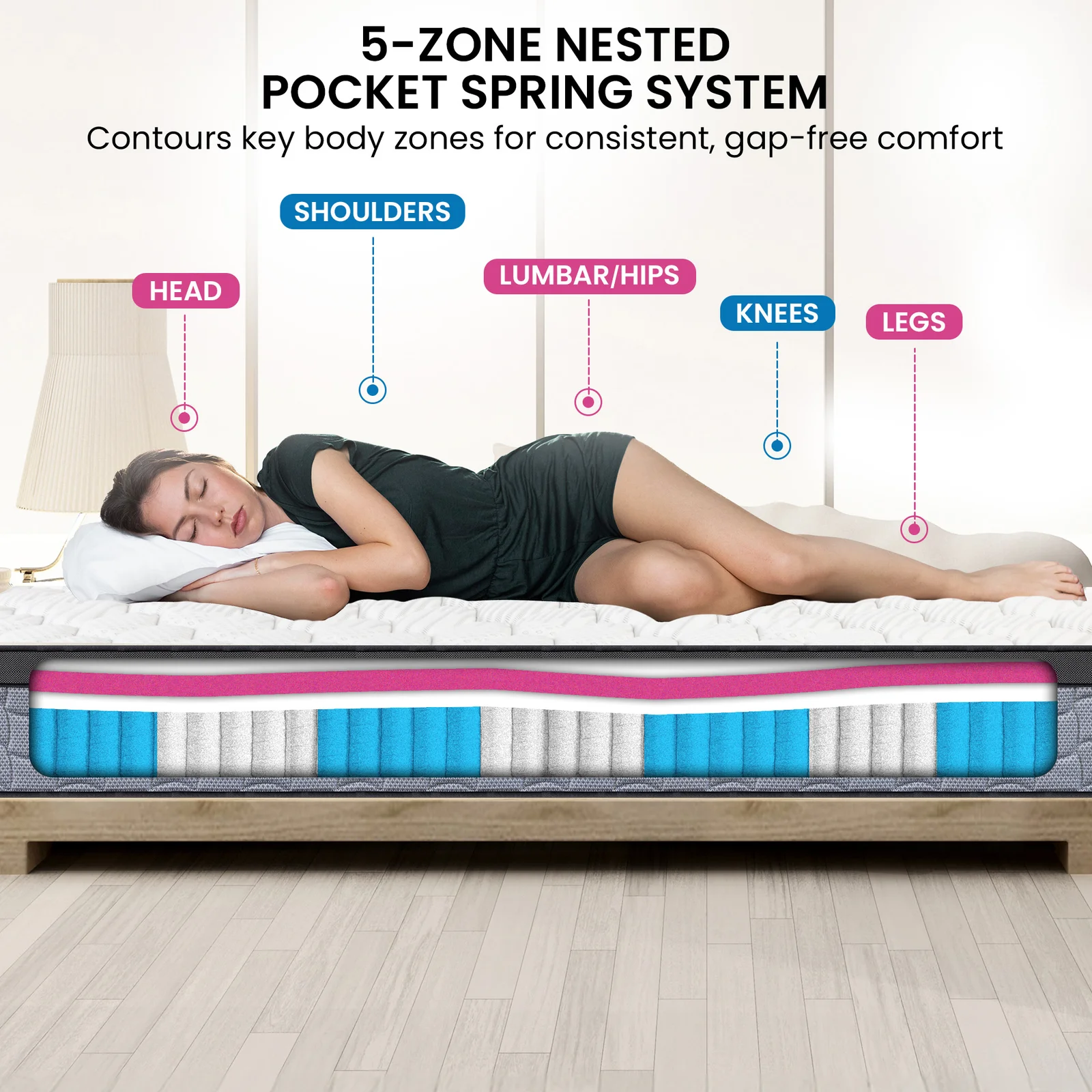 - 5-zone flex pocket spring system