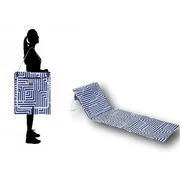 Relax to the max with a Fold Up Beach Mat. Ultra-soft, super easy on the eye and convenient to cart around this is the new way to chill on the sand. Lie it flat or prop it up and recline in style. With a handy pouch to place your accessories and a sturdy metal frame, you will be the envy of the beach. Made from 420D polyester and available in 2 styles. Fully padded deluxe lounger with adjustable backrest, when set up the lounger measures 160 x 55 cm; Packed size 50 x 55 cm ; Weight 1.4 kg each Large zipper pocket for personal items and Integrated shoulder strap make it easy to carry.