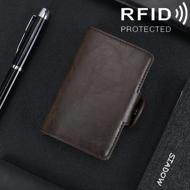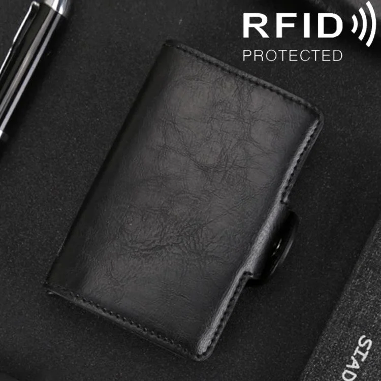Mini Crazy Horse Leather Rfid Wallet - Antimagnetic