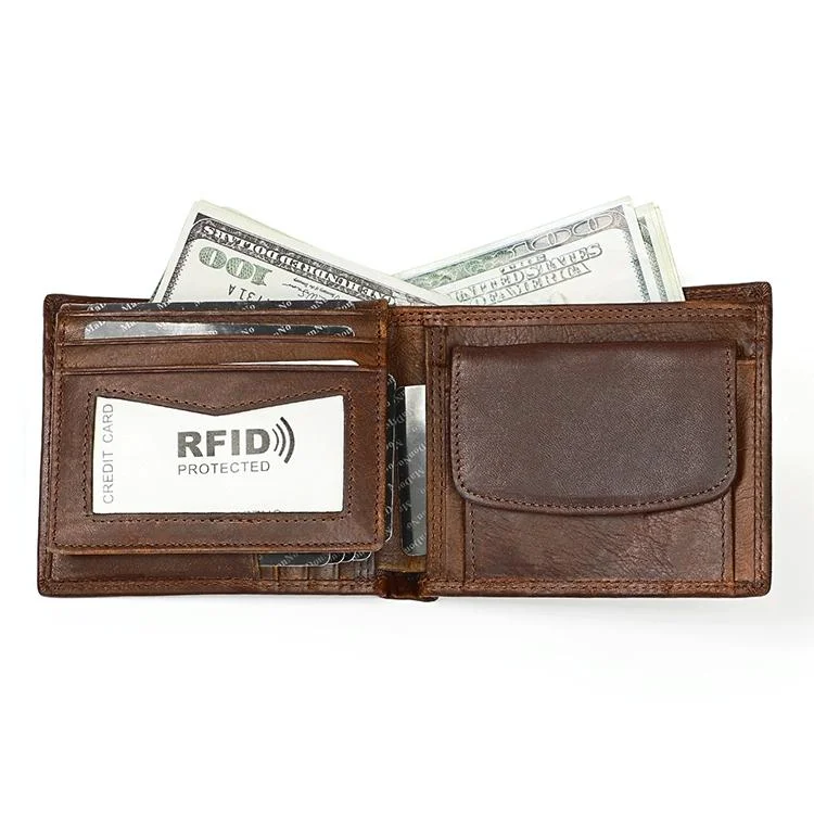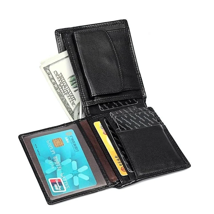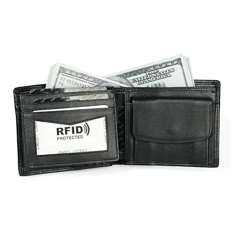 Rfid-protected Leather Wallet - Flat Pattern Blue Inside