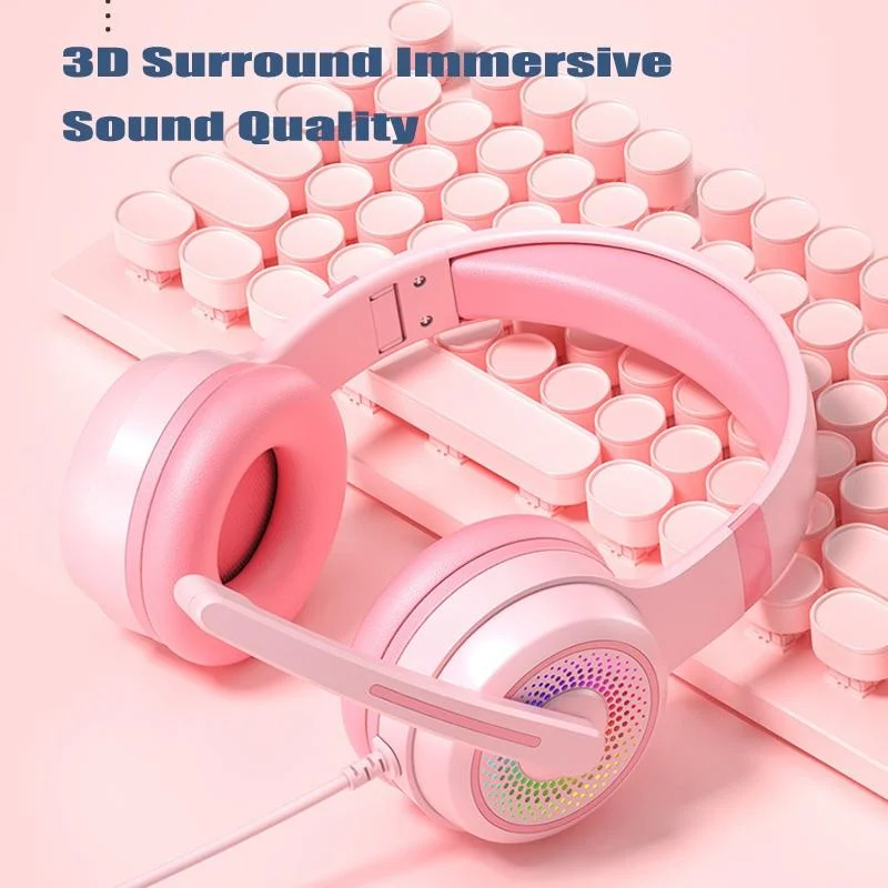 Adjustable Led Gaming Headset With Mic White Pink