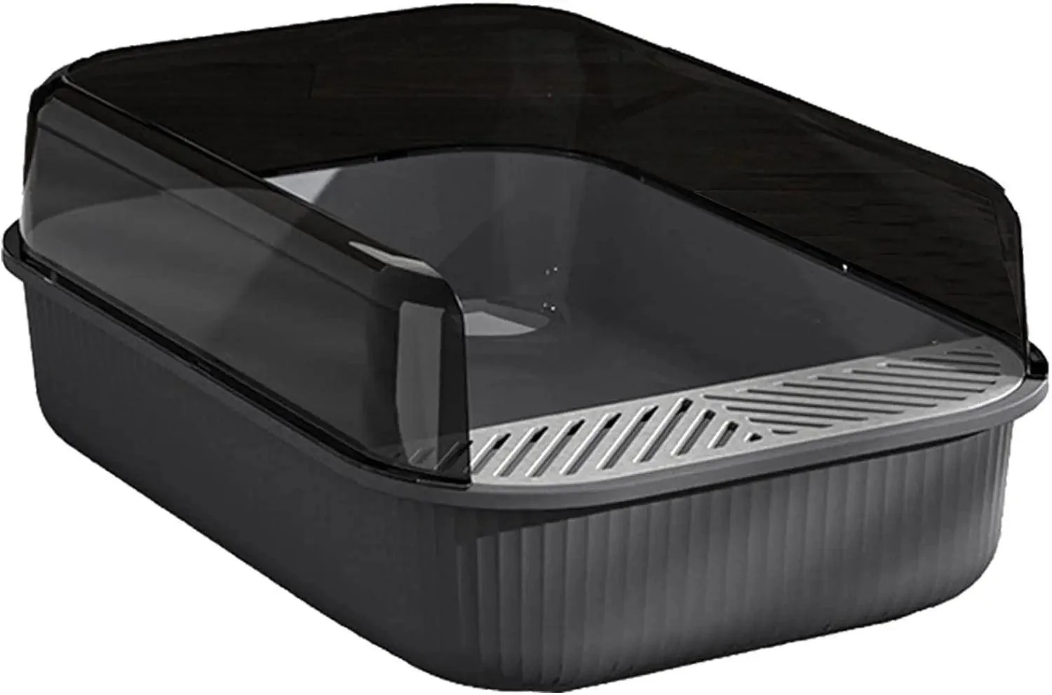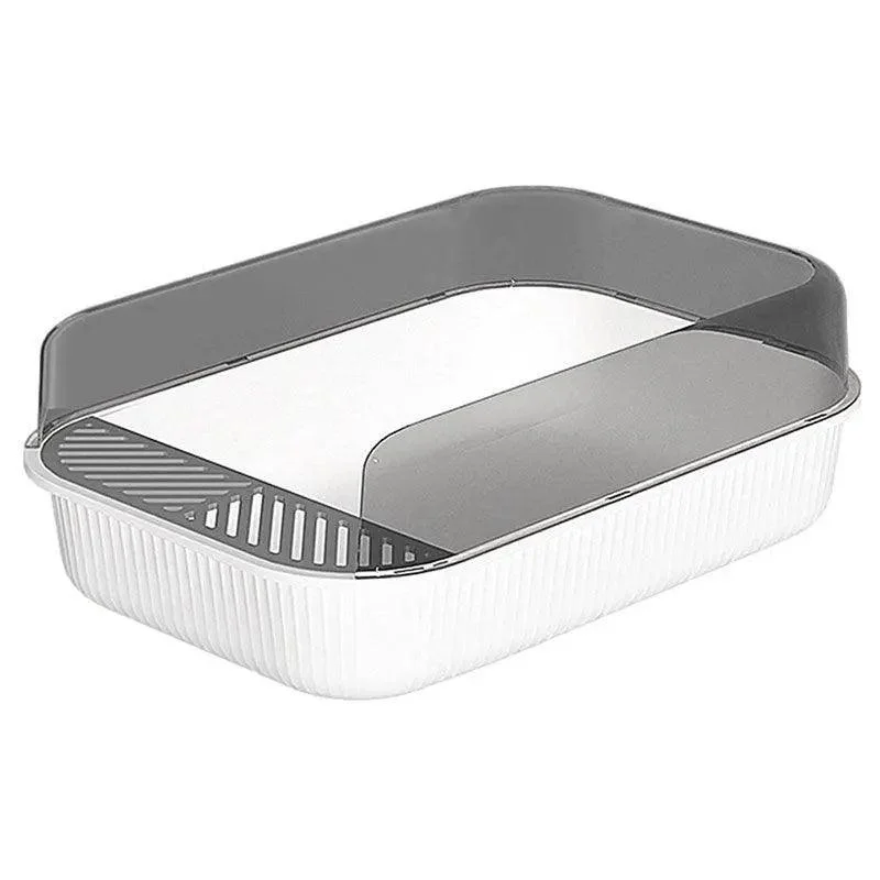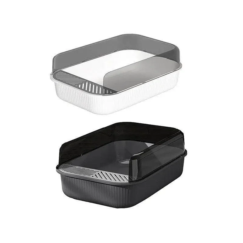 Spill Prevention: High Fence Design. The litter box is raised on both sides to prevent spillage of cat litter.