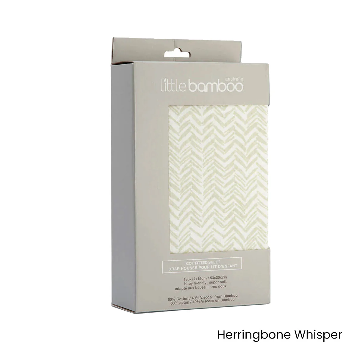 This Little Bamboo Jersey Fitted Sheet Cot Size Herringbone Whisper is deliciously soft and smooth, perfect for your baby's sensitive skin. The herringbone print design in white and pale green hues adds a touch of elegance in your nursery. Made from luxurious blend of bamboo and cotton, this sheet offers not only softness but also natural breathability to ensure your little one enjoys a comfortable sleep.