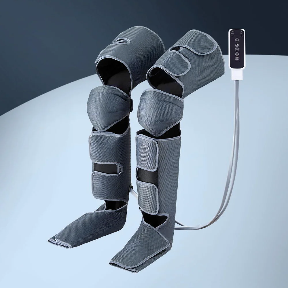 Experience deep relaxation with this air compression leg massager, designed to simulate professional massage techniques through rhythmic inflation and deflation. Unlike shiatsu massagers, it gently relieves muscle tension, improves circulation, and speeds up post-workout recovery. Choose from 3 adjustable intensities and 3 modes —ideal for customized therapy. In Separate mode, you can individually massage the feet, calf and thigh, targeting specific areas according to your needs. In Combine mode, massage the entire leg together or cycle from feet to thigh. Beginners, seniors, or those with leg injuries should start at Level 1 for a gentle yet effective massage. The adjustable wrap ensures a perfect fit, while the built-in heat function soothes soles and knees for enhanced relaxation. Made with high-quality soft fabric, it ensures maximum comfort during use.