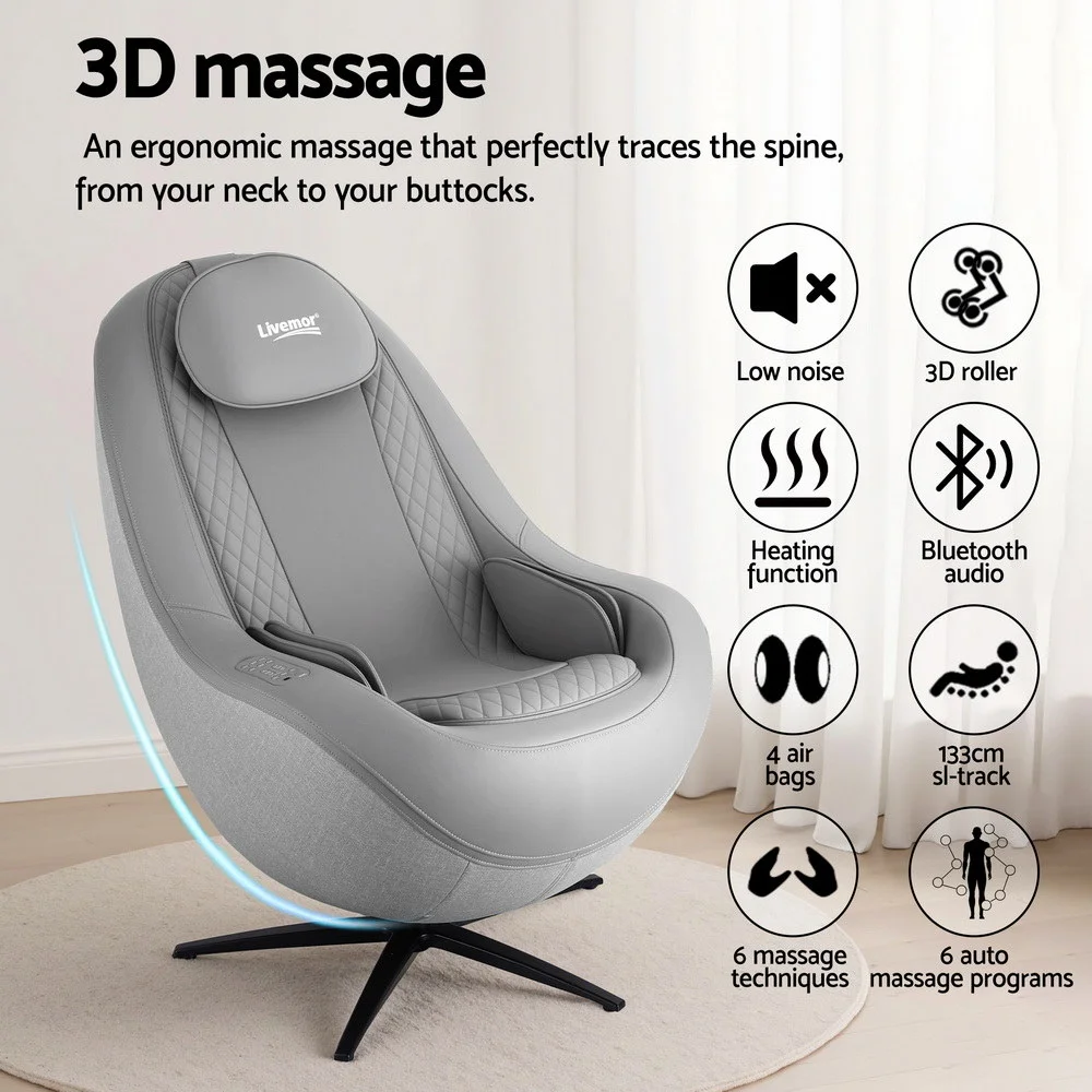 Take shelter from your busy life with our 3D Roli Electronic Massage Chair. Crafted with the latest massaging technology, the massage chair is a therapeutic marvel from top to bottom. The sophisticated 133cm SL-track design, 120-degree rotation and automatic zero gravity recline mimics the natural curve of your spine, providing a deep, therapeutic massage from your neck to your hips . It is jam-packed with premium features such as 6 auto massages, 6 various professional massage techniques, 4 pressure-adjustable airbags, and a luxuriously comfortable footrest. The waist-heated massage function adds to the total pleasure of relieving your body of aches and pains, while the adjustable massage intensity and airbag strength will keep you perfectly relaxed. You can listen to your favourite podcast, music or guided meditation with the built-in surround sound Bluetooth speaker. Activate all your preferred settings via the the control button. Take time out of your day to feel rested and rejuvenated with the 3D Roli Electronic Massage Chair. Get yours today.
