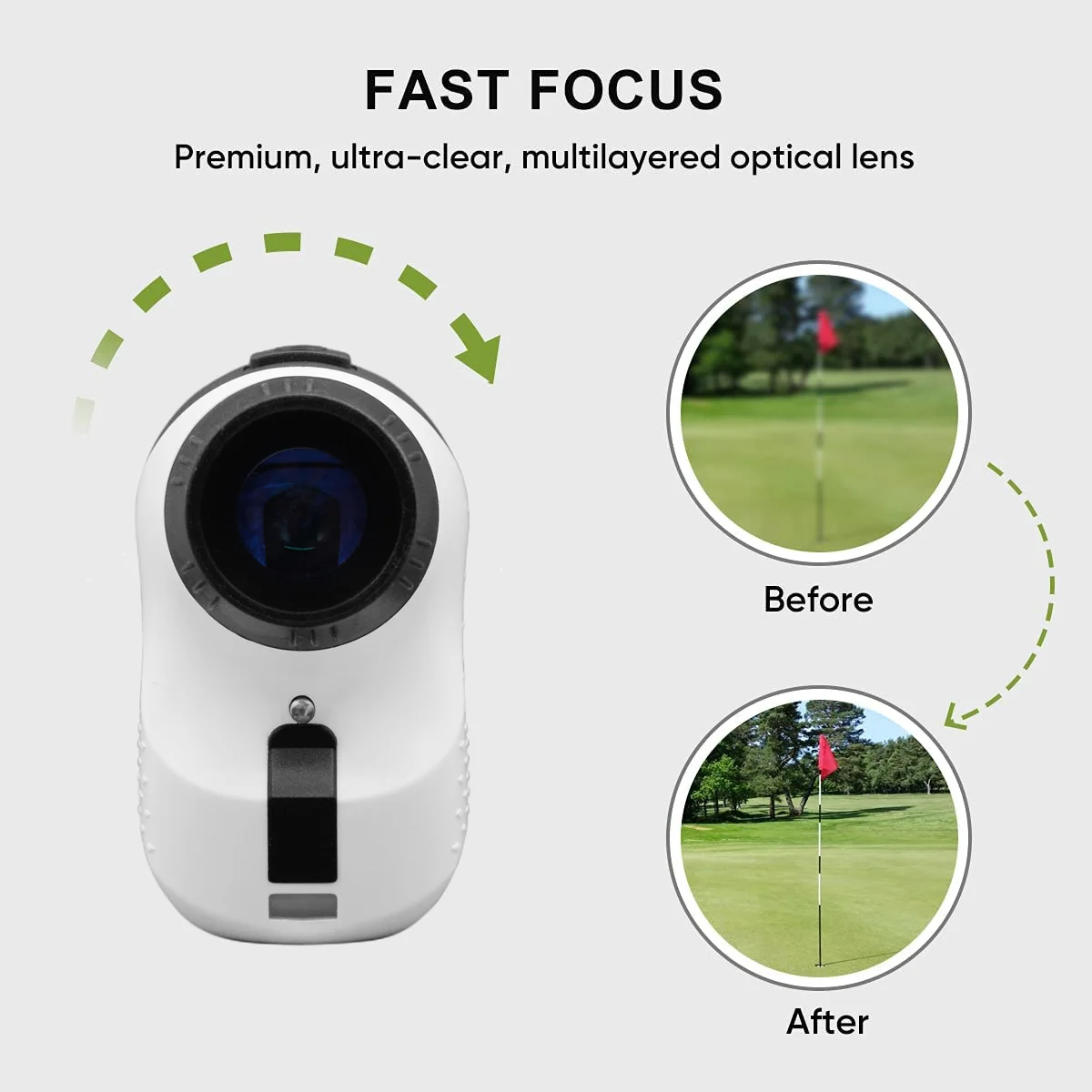 Improve your game with our Long Range Laser Rangefinder, designed for pinpoint precision and long-range measurement capabilities. This device allows you to measure distances from 5 to 500 yards with an accuracy of +/- 1 yard. Its ergonomic design offers a comfortable, rubberized feel for secure handling. The premium, ultra-clear, multilayered optical lens ensures fast and clear focusing on your target. With a short press of the power button, the distance value will be displayed, and a long press enables continuous measurement around the flagpole until a stable value is achieved. Comes beautifully packaged, making it an ideal gift for family and friends.