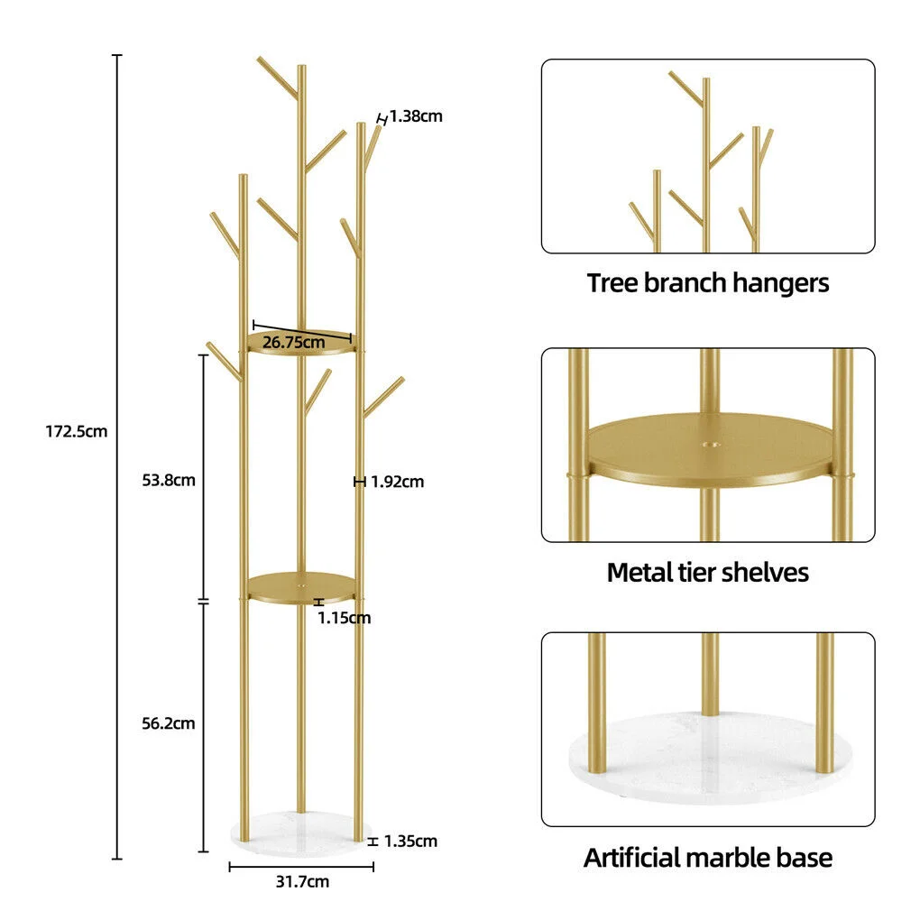 - Elegant Design & Durable Construction: Enhance your home or office decor with this coat rack's modern tall tree design featuring a golden iron frame and an artificial marble base, ensuring stability and style that complements any interior.