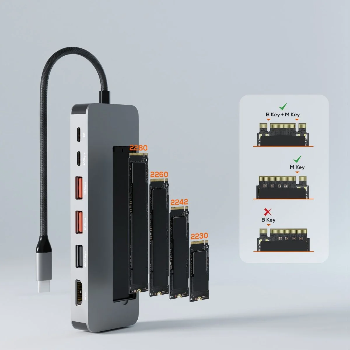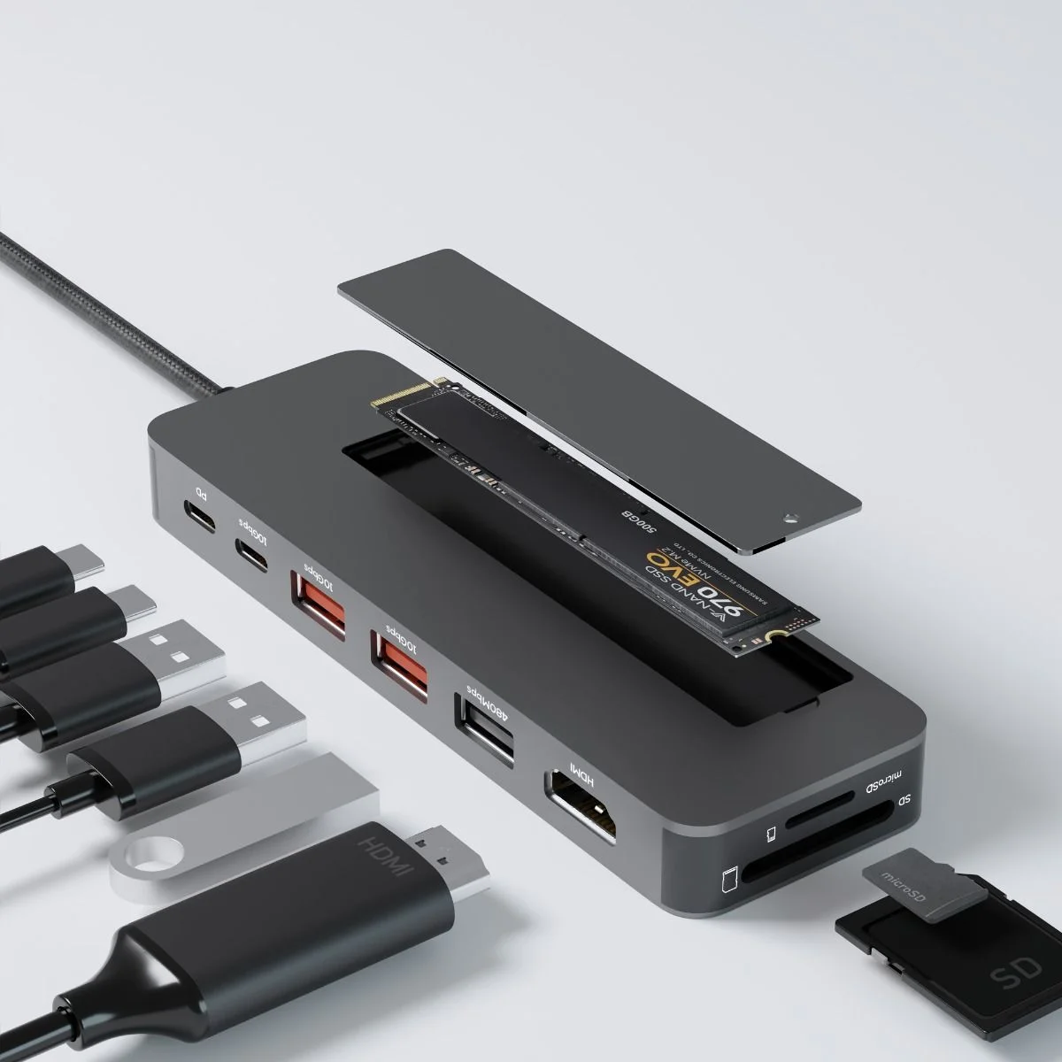 Integrates a dedicated M.2 SSD slot supporting NVMe drives (M key or B+M key), allowing you to expand your storage and access large files at lightning-fast speeds. Ideal for video editors, photographers, and professionals managing high-volume data on the gono separate enclosure required.