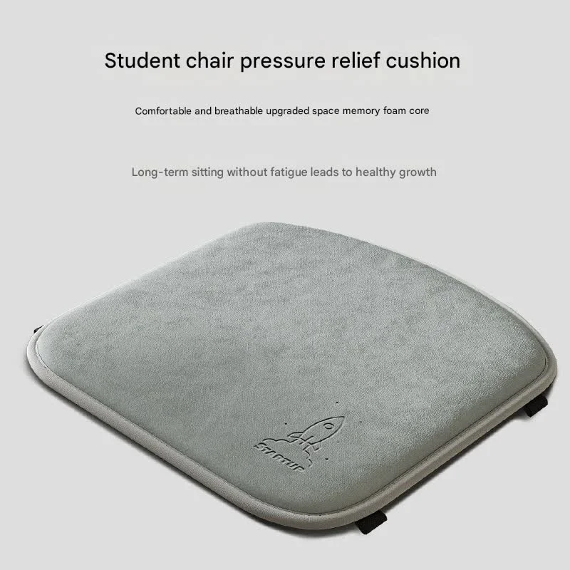 Support your child's healthy growth and comfortable learning with our Pressure Relief Memory Foam Seat Cushion. Specially designed for students, this cushion helps correct sitting posture and provides relief from the discomfort of prolonged sitting. Its scientific multi-layer structure combines a soft microfiber surface, a breathable cotton inner layer, a supportive space-grade memory foam core, and a non-slip latex base. This combination offers a perfect balance of softness and support, effectively releasing spinal pressure. The dual non-slip design, featuring a breathable, grippy base and adjustable elastic straps with buckles, ensures the cushion stays securely in place on any chair. Durable and made with safe, additive-free materials, this cushion is an essential accessory for any student's chair.
