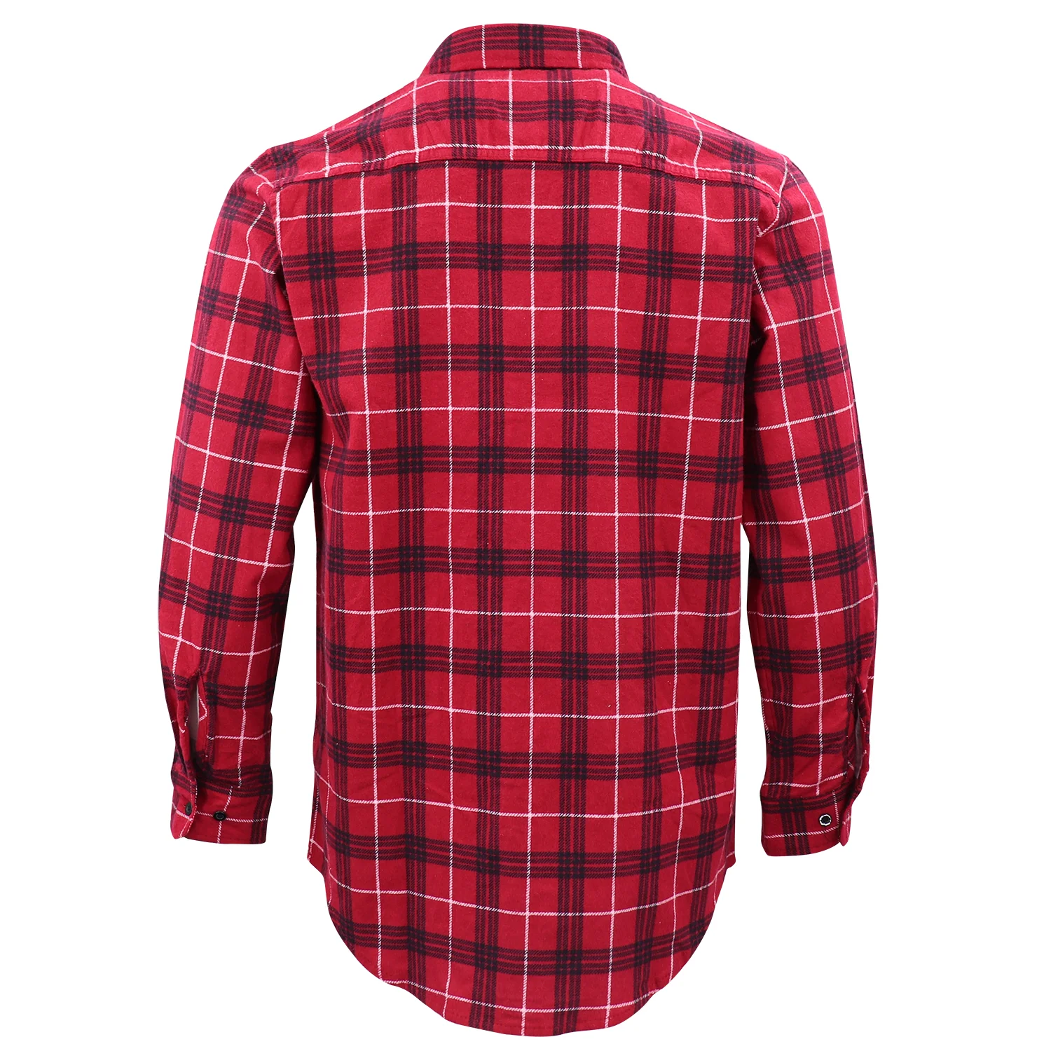 Men's 100% Cotton Flannelette Shirt Long Sleeve Plaid Check Flannel w Pockets, Scarlet Ember Plaid, M