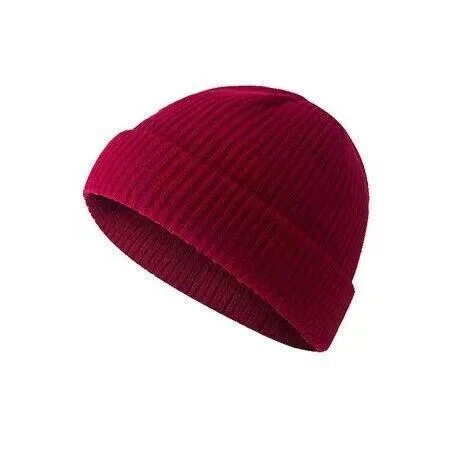 Men Women Mini Fisherman Beanie Winter Spring Hat Soft Knitted Docker Skull Cap - Rose Red