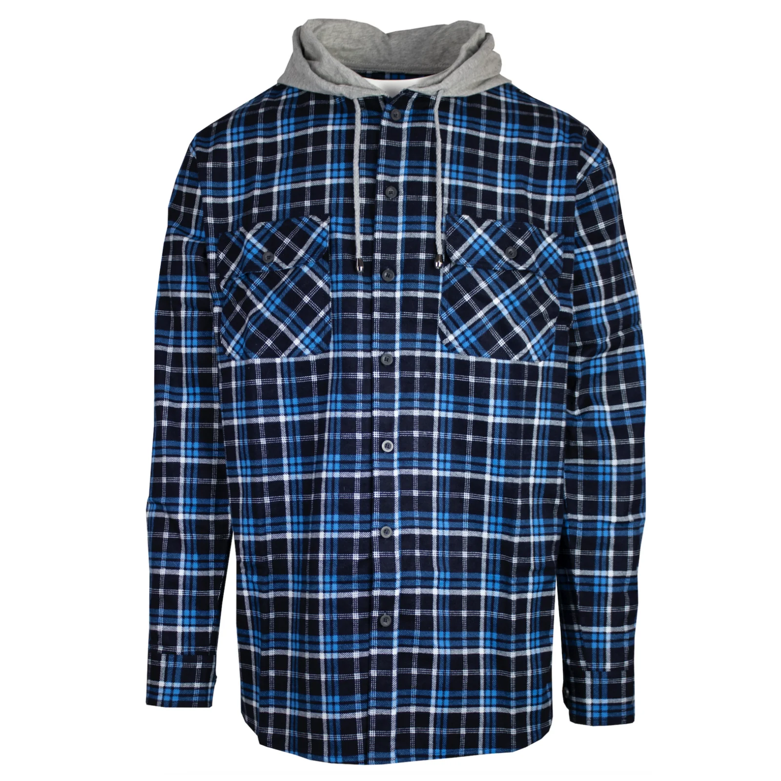 Men's Cotton Flannelette Shirt w Jersey Hood Long Sleeve Flannel
