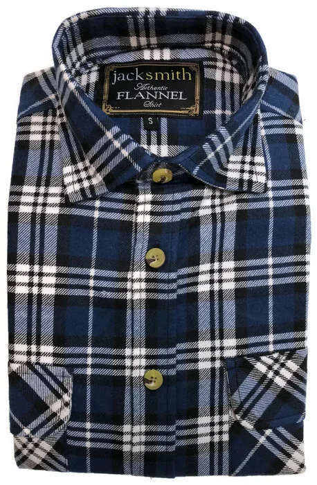 Men's 100% Cotton Flannelette Shirt Long Sleeve Plaid Check Flannel w Pockets, Midnight Navy Plaid, S