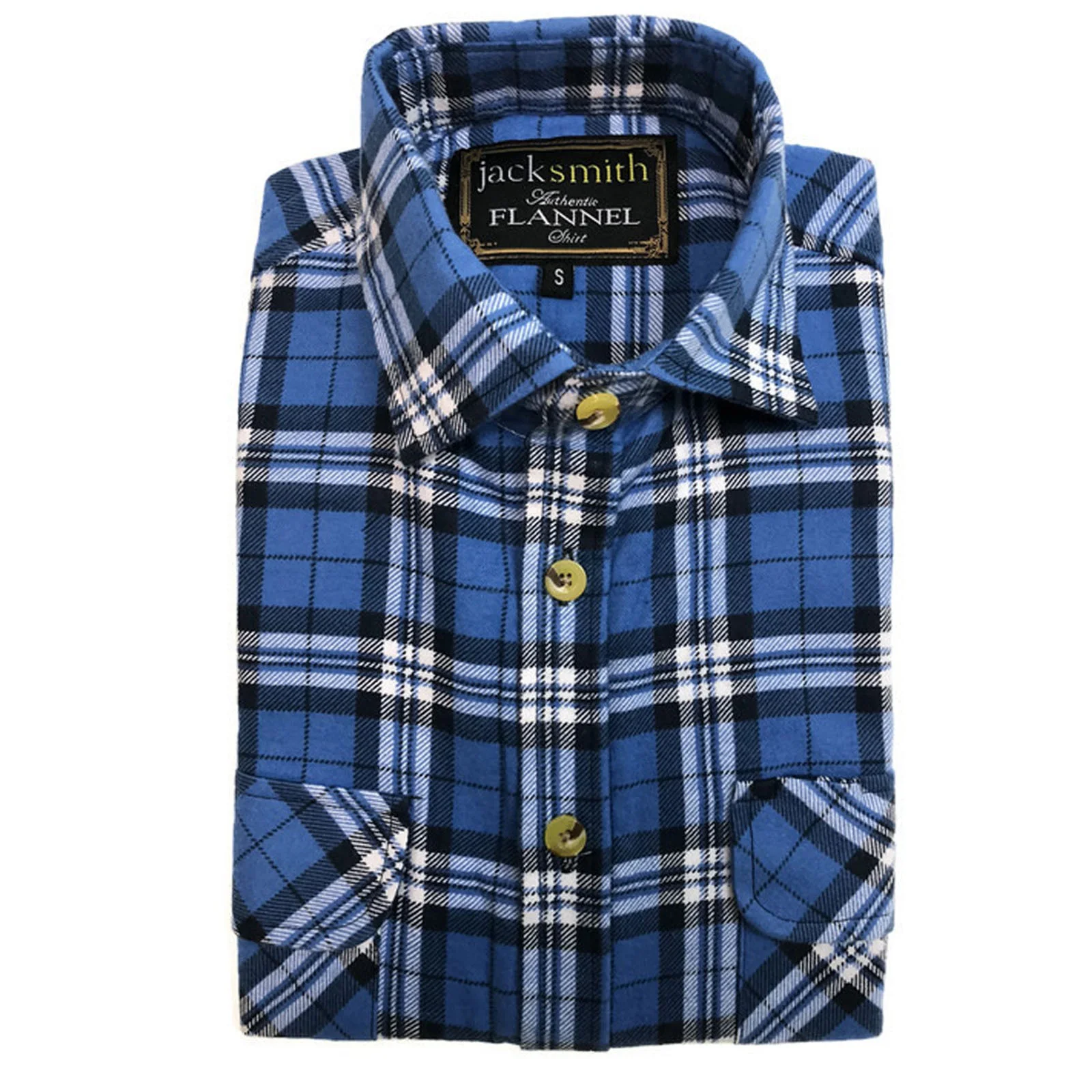 Men's 100% Cotton Flannelette Shirt Long Sleeve Plaid Check Flannel w Pockets, Patriot Blue Plaid, 2XL