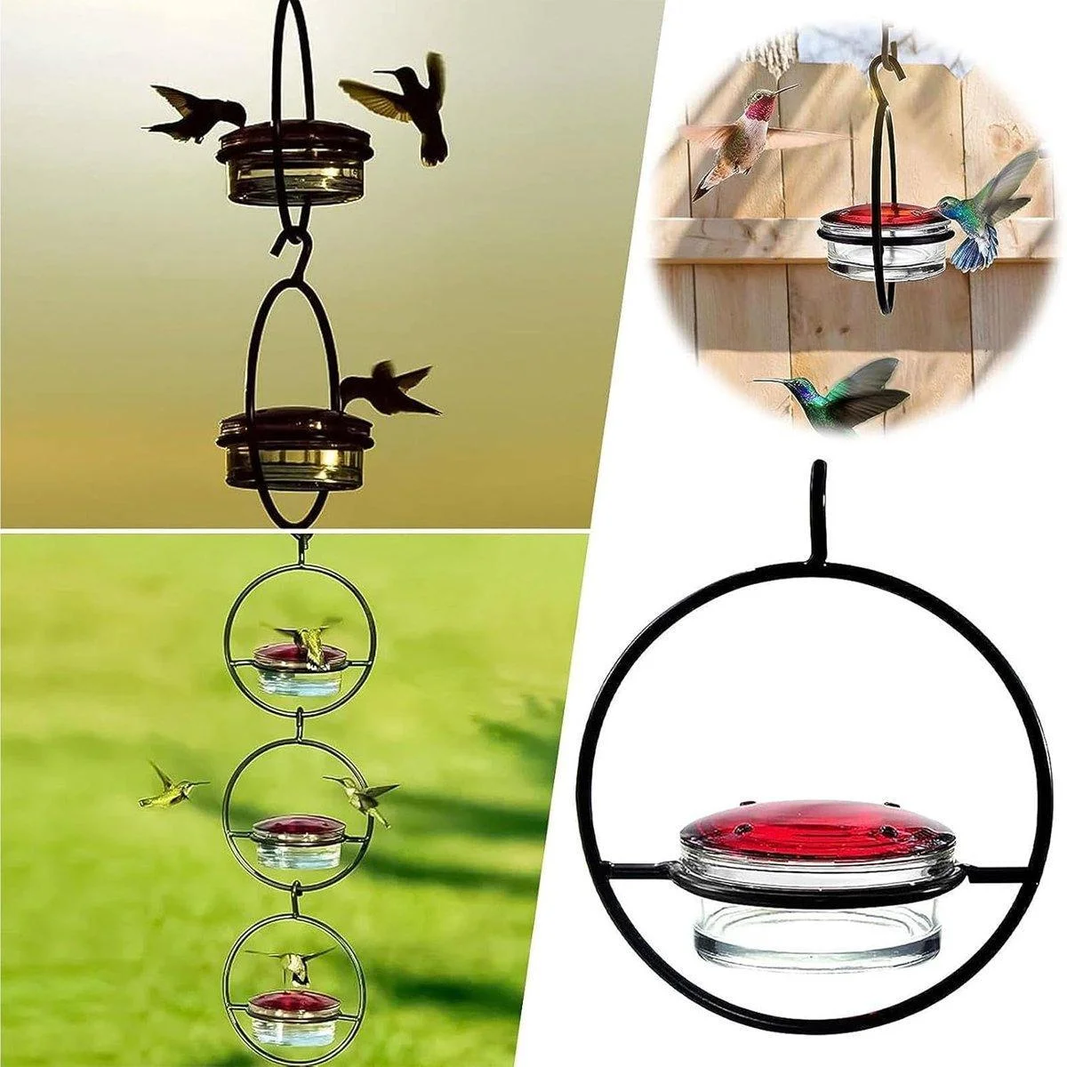 Bring charm to your outdoor space with this beautifully crafted metal hummingbird feeder. Designed with simplicity and durability in mind, it features a sleek round metal frame and a sturdy glass reservoir for water. The vibrant red top naturally attracts hummingbirds, inviting them into your garden for easy viewing. Lightweight yet resilient, this feeder is perfect for hanging in any garden, patio, or balcony. Ideal for bird enthusiasts and nature lovers alike, it provides a serene bird-watching experience and supports local wildlife by offering a safe water source for hummingbirds.