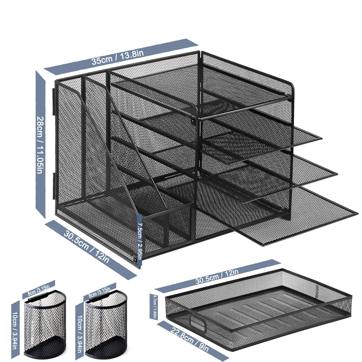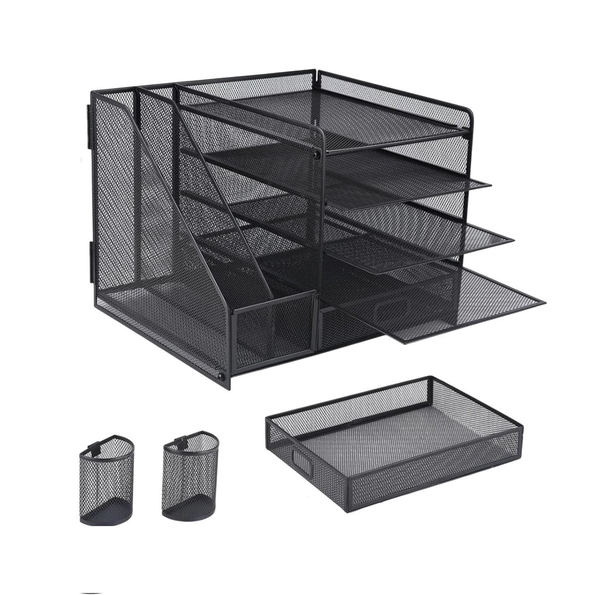 Keep your workspace neat and organised with this multi-tier desktop file holder. Designed for efficiency and durability, this organiser features multiple compartments, shelves, and a sliding drawer to store files, documents, stationery, and office essentials. Constructed from sturdy metal with reinforced connections, it offers long-lasting stability for everyday use. Its compact yet spacious design ensures it fits comfortably on desks in offices, classrooms, or home workstations without taking up too much space.