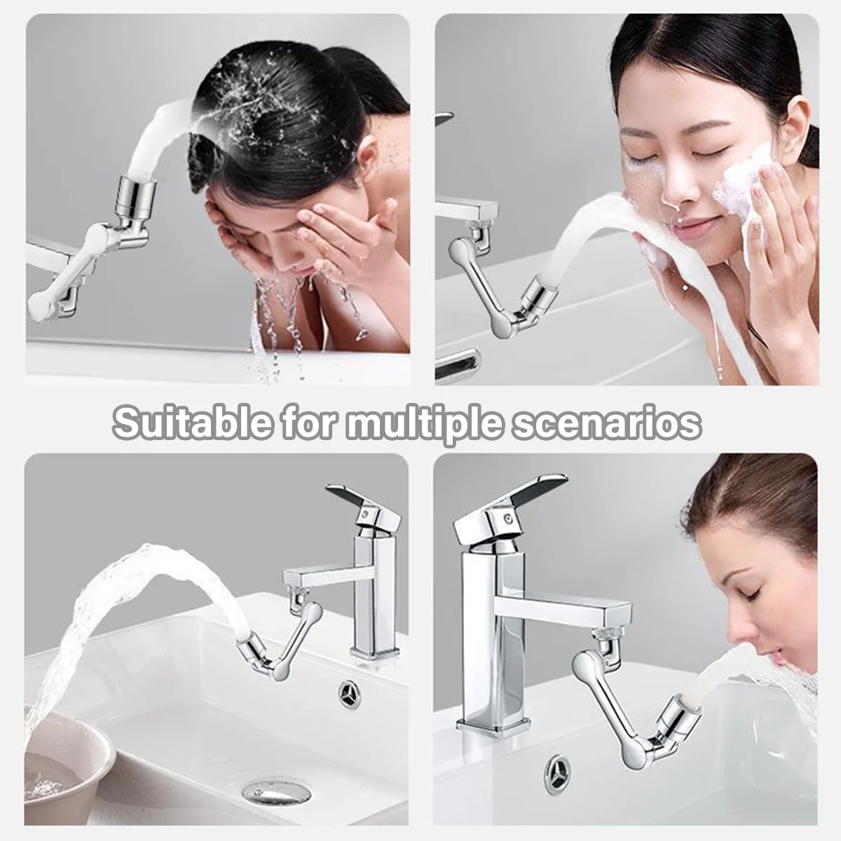 This versatile mechanical arm faucet extender offers enhanced flexibility and water control for your kitchen, bathroom, or balcony taps. Designed with dual water outlet modes, it enables both direct stream and spray function with a simple switch. The multi-angle rotating arm ensures full sink coverage, while the universal connector makes it compatible with most faucet types. Made with durable materials and a built-in 0.3mm triple filter for cleaner water, this extender is ideal for everyday washing, rinsing, and cleaning.