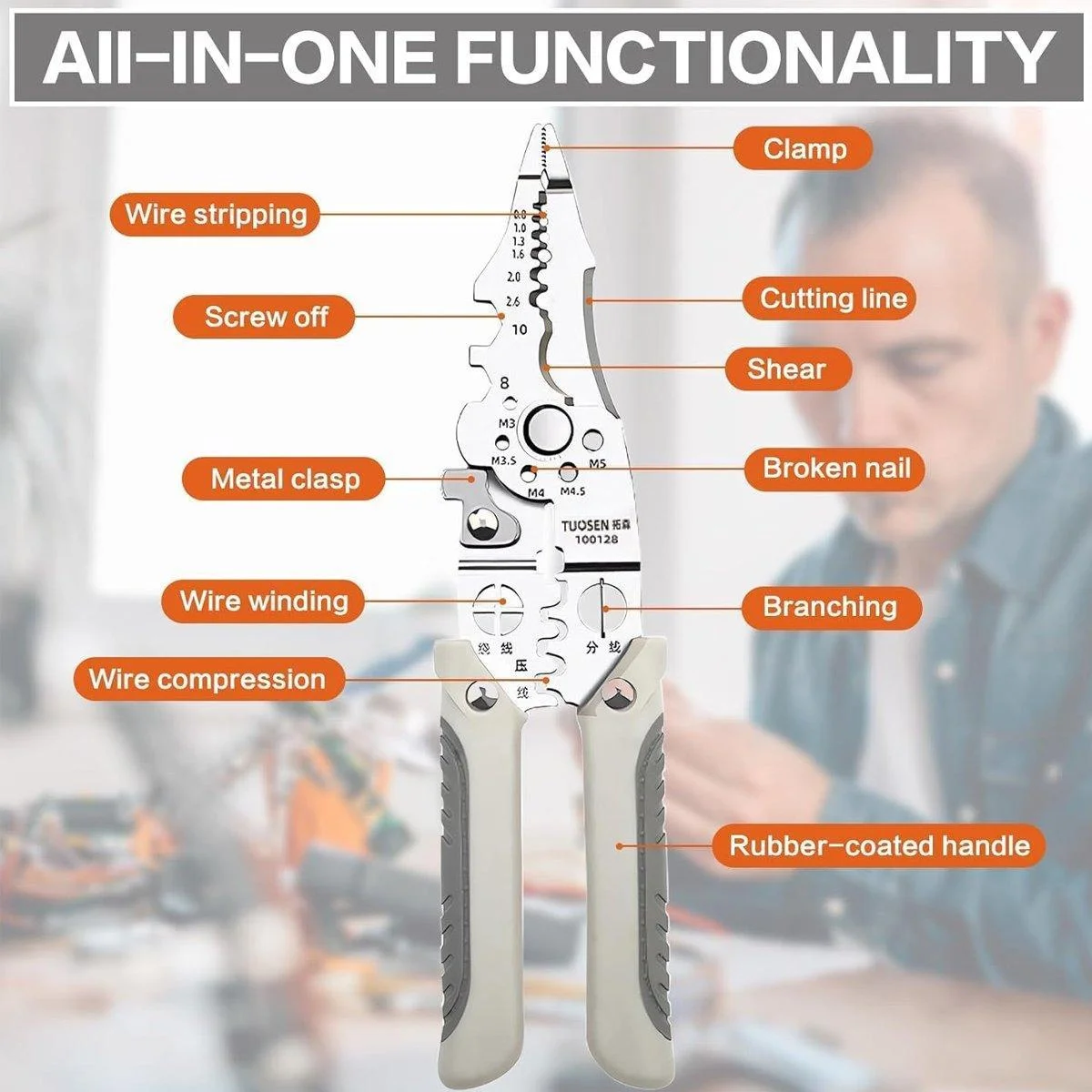 All-in-One Functionality: Suitable for cutting wires, breaking nails, compressing cables, and more, making it an essential tool for electricians.