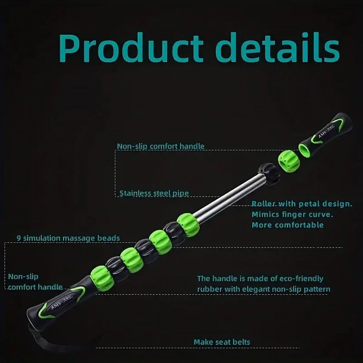 This high-strength muscle massage roller stick is designed to alleviate muscle soreness, reduce stiffness, and promote recovery after workouts.With a unique 9-roller design, it allows for a deep tissue massage that targets multiple muscle groups, from legs to arms, neck, and back.Perfect for both athletes and those needing relief from tight muscles, this roller is a convenient tool for relaxing fascia and aiding post-exercise recovery.Its ergonomic handle with an anti-slip grip ensures ease of use and control, even during intensive massage sessions.