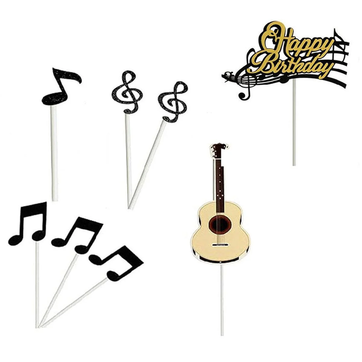 Bring a creative and vibrant touch to your birthday celebrations with this stunning set of musical-themed cake toppers. Featuring violin, music notes, treble clefs, and a "Happy Birthday" topper, these decorations are ideal for any music lover's special day. Designed for cakes, cupcakes, and other desserts, these toppers are lightweight, easy to insert, and add an eye-catching flair to your cake. Made from durable materials, they are perfect for birthdays, music-themed events, and any celebration where you want to add a fun, personalised touch to your desserts. These versatile toppers fit cakes of all sizes and offer a colourful and unique way to decorate.?