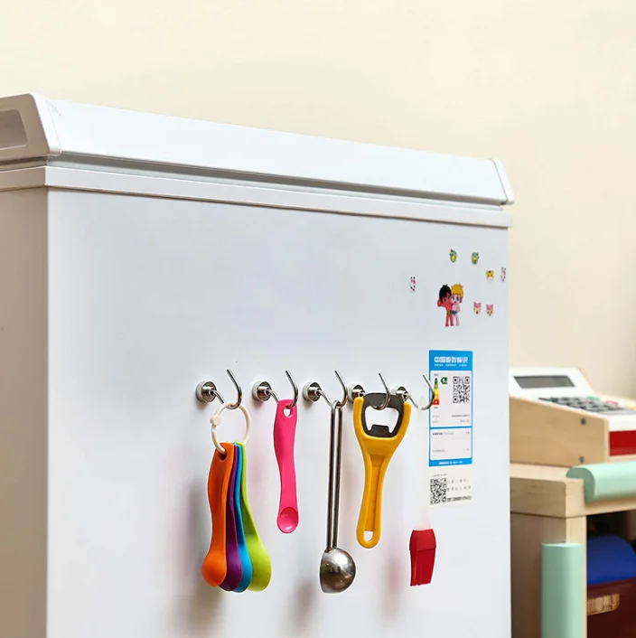 Transform cluttered surfaces into neat storage areas with these specialized large-opening magnetic hooks. The extended "J" shape hook is designed to solve the common problem of standard hooks being too narrow for everyday items. Whether you need to keep your BBQ tongs within reach on the grill, organize cables in the garage, or simply tidy up your kitchen fridge, these hooks provide a reliable and damage-free solution.