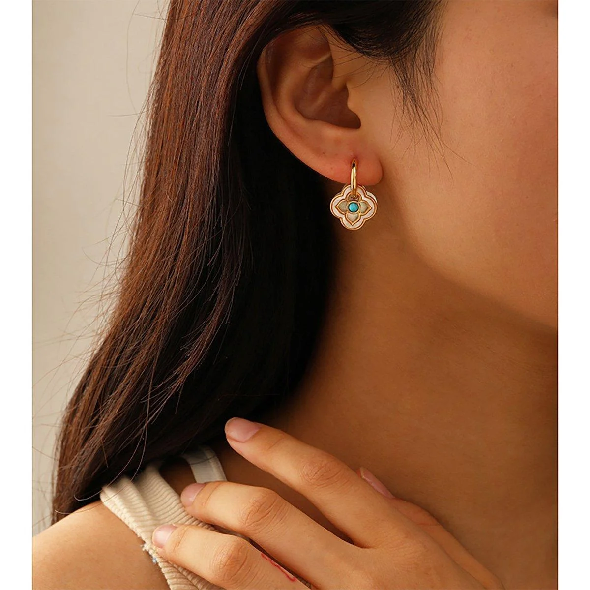 • 1 pair of AIMALL Four-Leaf Clover Natural Shell Earrings