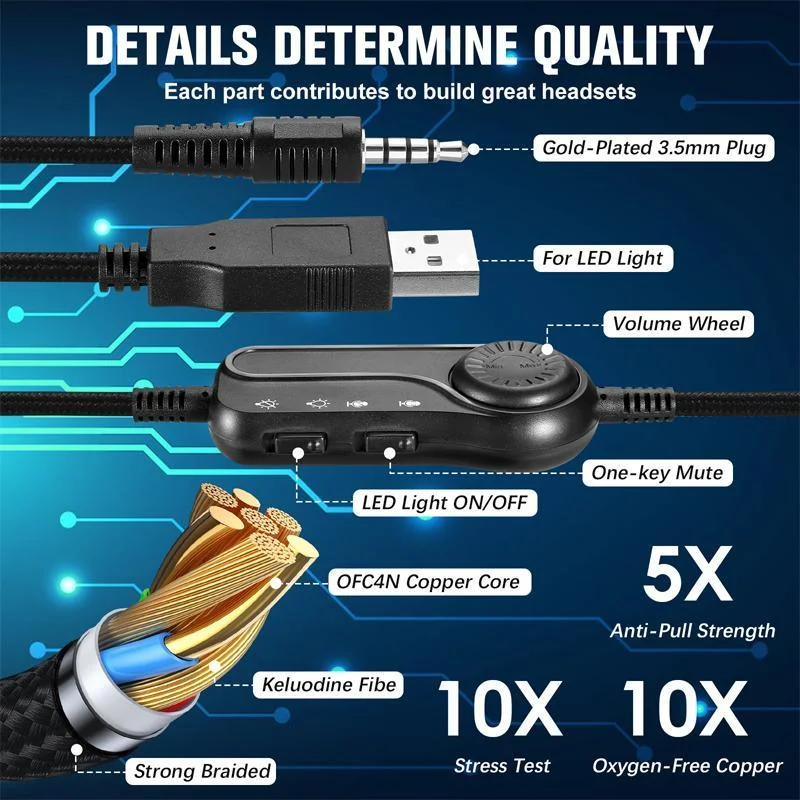 Rgb Gaming Headset With Microphone 2.2M Length - White