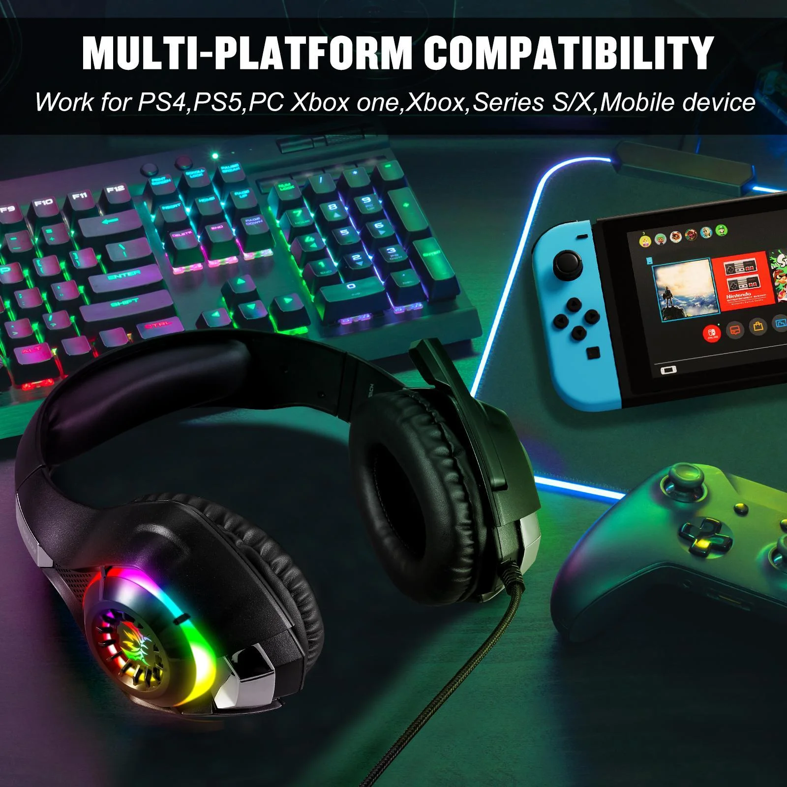 Foldable Led Headset With Mic Usb + 3.5Mm Port - Light Blue