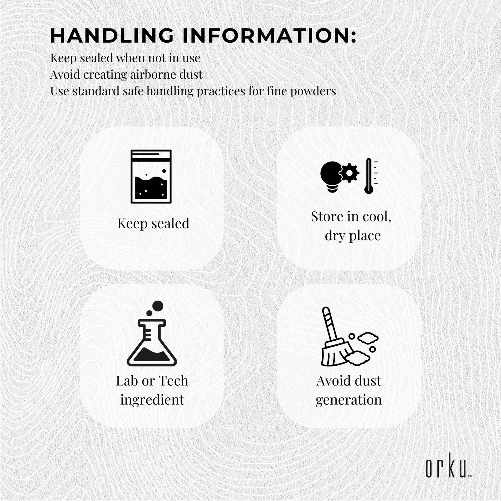 - Combustible solid - avoid generating dust