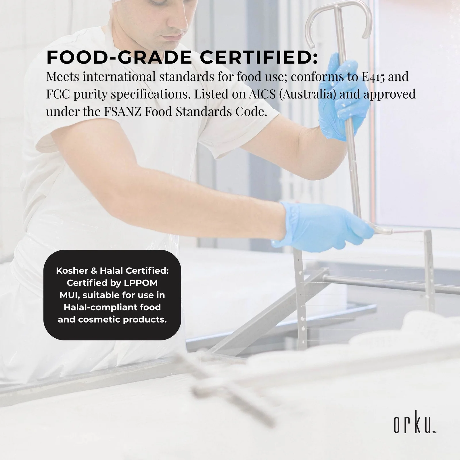 - Food-Grade Certified: Meets international standards for food use; conforms to E415 and FCC purity specifications. Listed on AICS (Australia) and approved under the FSANZ Food Standards Code.