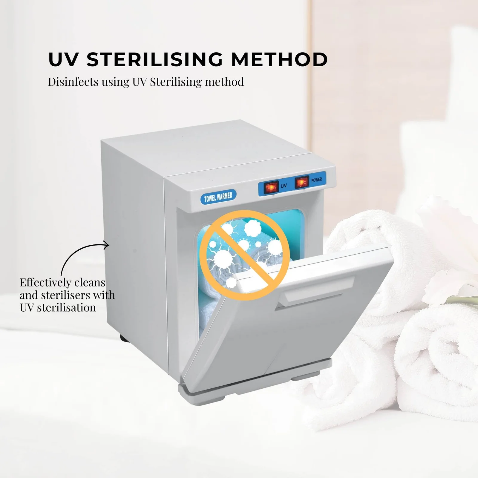 Wipe and dry the interior daily. Operate up to 8 hours per day and avoid leaving towels inside for more than 2 hours. Always ensure towels are present during use. A mild odour may occur when warming damp towels; keep the unit in a well-ventilated area.