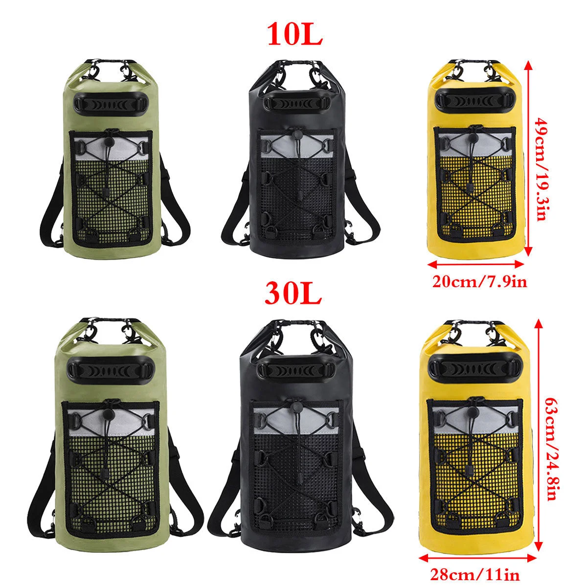 This durable waterproof bag is designed to keep your essentials dry and secure during outdoor activities like rafting, kayaking, camping, and swimming. Made from tear-resistant 500D polyester with a waterproof vinyl layer, it offers exceptional protection in wet conditions. Featuring adjustable shoulder straps and external mesh storage, the bag is both practical and versatile. Available in 10L and 30L sizes, and in yellow, green, and black, this bag is perfect for adventurers seeking reliable gear storage.