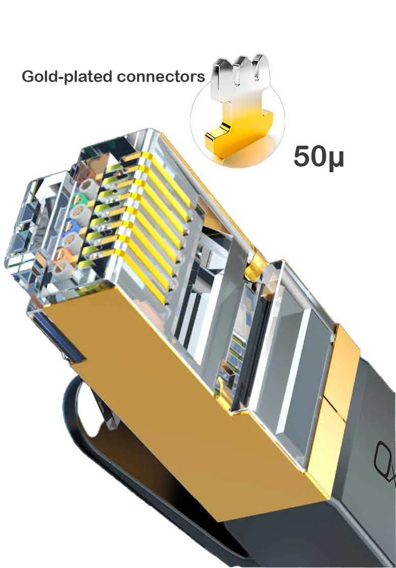 Supports up to 40Gbps data transfer speed, four times faster than Cat6a, with bandwidth up to 2000MHz to reduce latency and ensure superior signal quality.
