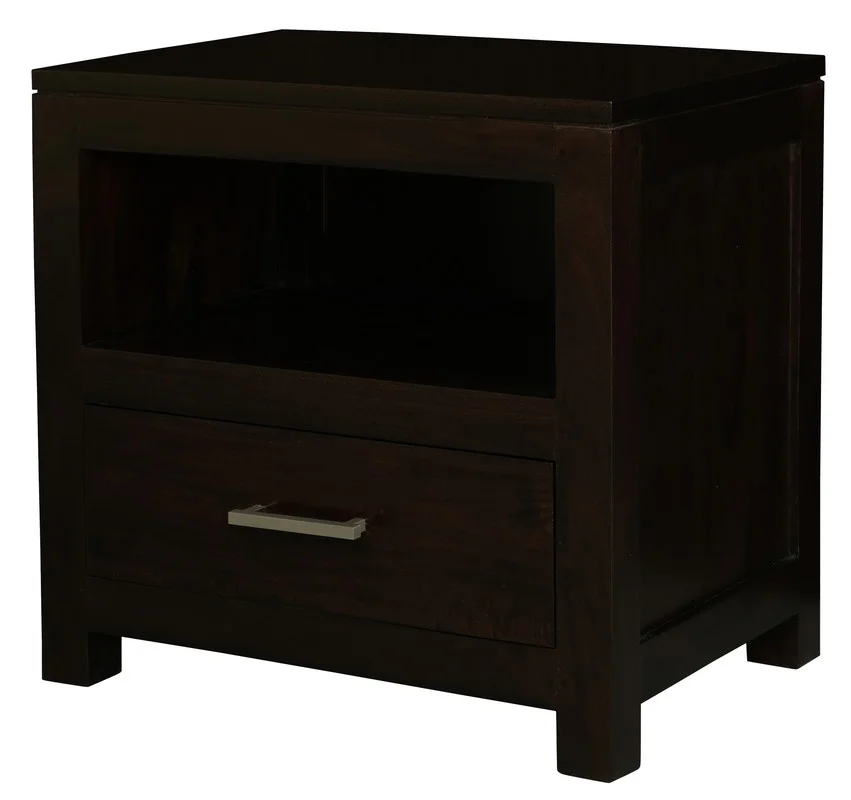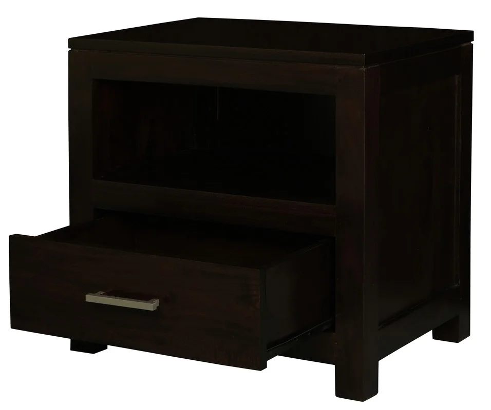 Introducing the Paris 1 Drawer Solid Mahogany Timber Lamp Table, a sophisticated blend of modern design and timeless elegance. Inspired by the sleek lines and refined aesthetics of contemporary furniture, this table brings a touch of Parisian chic to your home. Crafted from the finest solid mahogany timber, the Paris Lamp Table boasts rich, deep tones and a smooth, polished finish that exudes luxury and sophistication. The Paris Lamp Table is not just a piece of furniture but a statement of style and functionality. Its well-thought-out design includes a spacious drawer with a modern handle, providing ample storage for your essentials. The open shelf is perfect for displaying books, decorative items, or keeping your nighttime essentials within easy reach. The tables versatile dimensions make it an ideal addition to any room, whether it be your living room, bedroom, or home office.Designed for immediate use with no assembly required, the Paris Lamp Table offers ultimate convenience and durability. Available in a range of finishes Chocolate, Light Pecan, and Mahogany it seamlessly blends with any décor, adding a touch of classic charm and sophistication to your home.