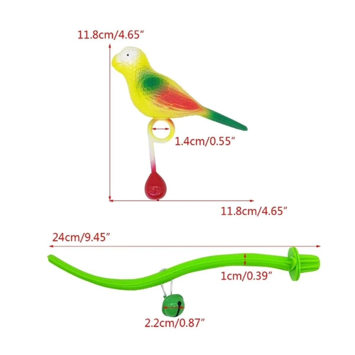 Dimensions: Bird: 11.8cm (L) x 3.4cm (W), Perch: 24cm (L) x 2.2cm (W)/9.45in x 0.87in