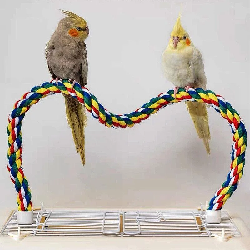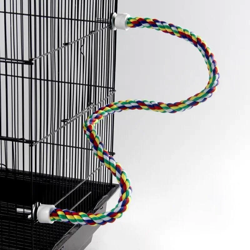 This parrot rope perch is a colourful and durable accessory for bird cages, designed to provide both fun and function for your pet birds. Made from high quality cotton rope, it is non toxic and safe for chewing, helping to keep your parrot entertained and active. The flexible rope can be shaped into different forms, allowing you to create a climbing, perching, or swinging toy inside the cage. Easy to install with double headed attachments, this rope perch is suitable for parrots of different sizes and adds variety to their play and training routine.