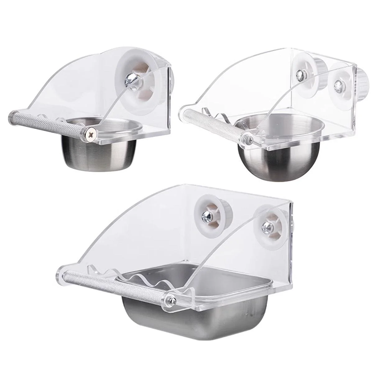 This stainless steel bird food bowl is designed to provide a clean and practical feeding solution for your feathered friends. Featuring an anti-spill design, it helps reduce mess and keeps the feeding area tidy. Made from durable stainless steel and acrylic, it is safe, long-lasting, and easy to clean. Suitable for various bird species, this feeder is perfect for both food and water. Its transparent acrylic structure allows you to monitor food levels easily while adding a stylish touch to any bird cage.