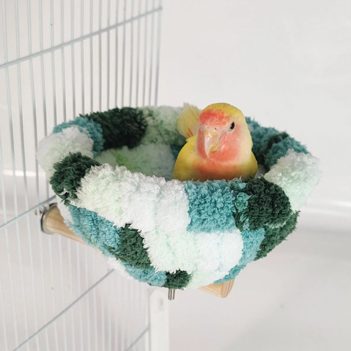 This warm and fluffy bird nest is designed to keep your parrot cozy during colder months. Made from soft cotton fabric with a plush interior, it provides a comfortable and secure resting space for birds. The colourful design adds a vibrant touch to any birdcage, while the sturdy wooden perch with a secure mounting bracket ensures easy installation. Ideal for parrots, lovebirds, cockatiels, and other small to medium-sized birds, this nest offers warmth, comfort, and a sense of security.