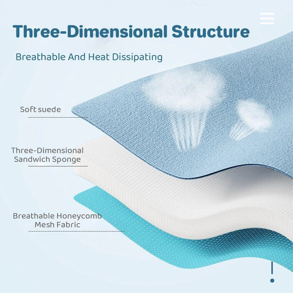 Material: Breathable honeycomb mesh fabric, three-dimensional sandwich sponge, soft suede