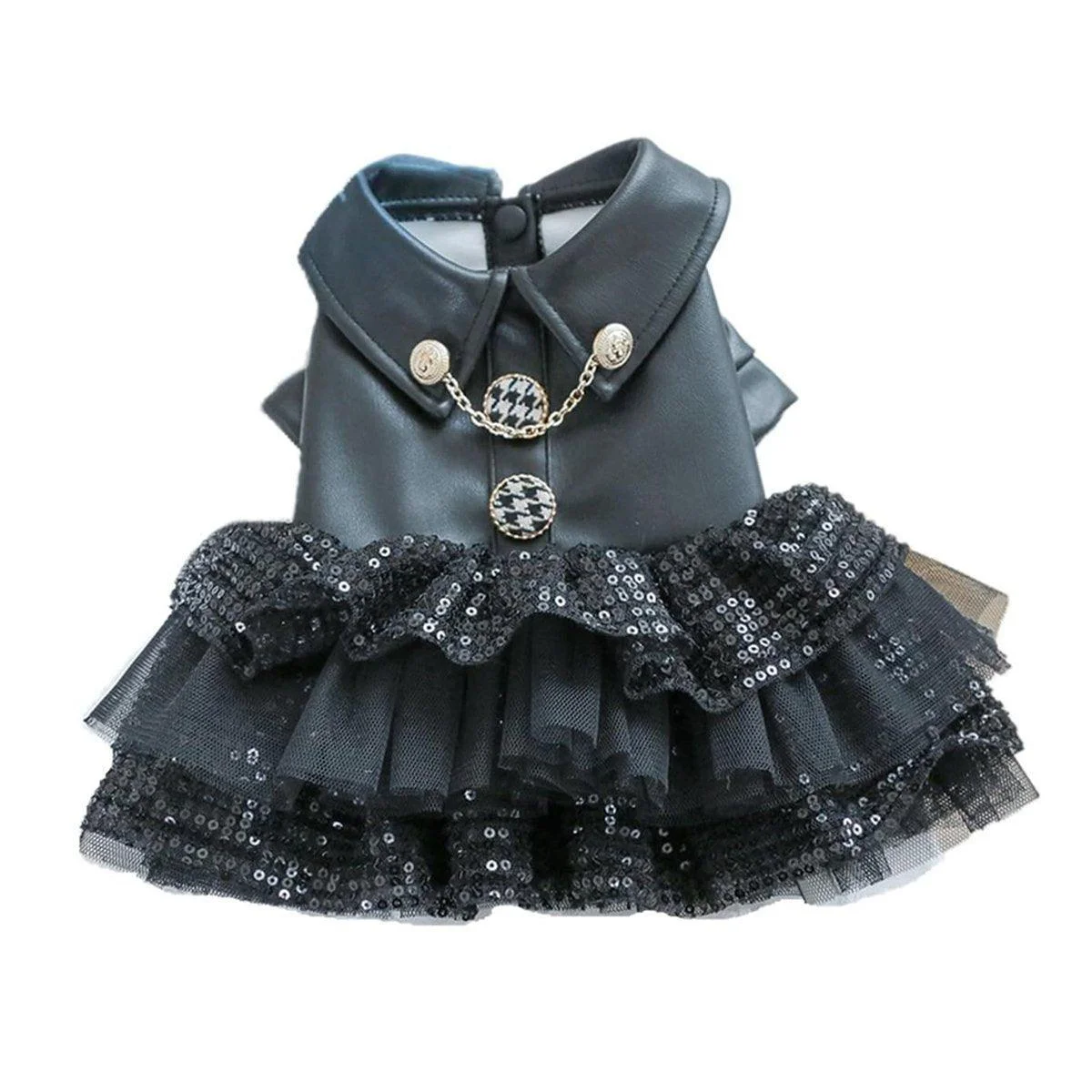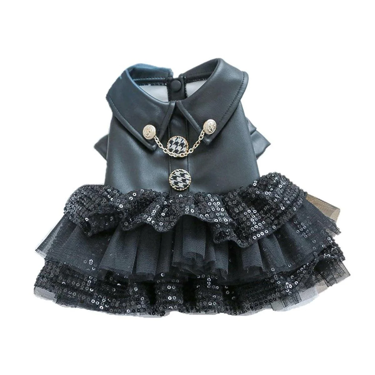 Dress your pet in style with this stunning leather and sequins skirt, designed to make your pet the center of attention. Perfect for autumn and winter, this fashionable outfit combines comfort with elegance, featuring a chic leather bodice adorned with delicate sequins that shimmer beautifully. Ideal for small dogs and cats, this outfit is not only adorable but also provides warmth, making it perfect for special occasions or everyday wear.